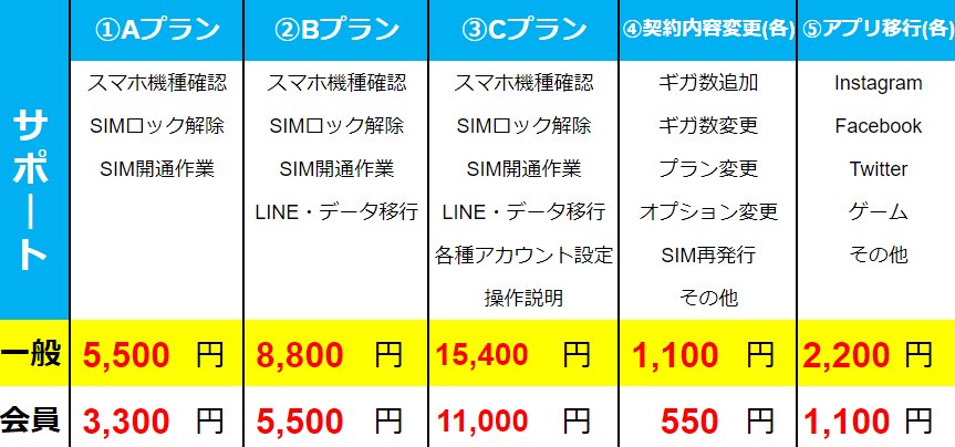 パソコン・スマートフォンの修理・メンテナンス・サポート料金、格安SIMプランの月額料金を紹介しています。